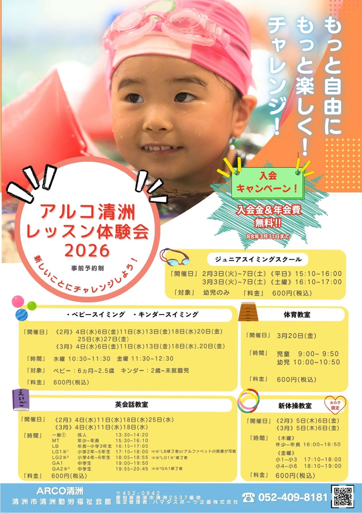 | PDF資料 | 【アルコ清洲 【レッスン体験会2026!】】 ダウンロード |